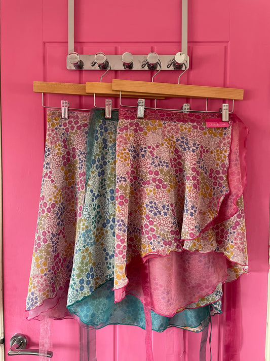Blue Wave - Two layers Wrap ballet Skirt with printed fabric